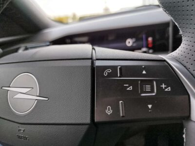 - Kierownica pokryta sztuczną skórą Modern Lisa, perforowana, z manetkami zmianypoziomu odzysku energii i sterowaniem radiem