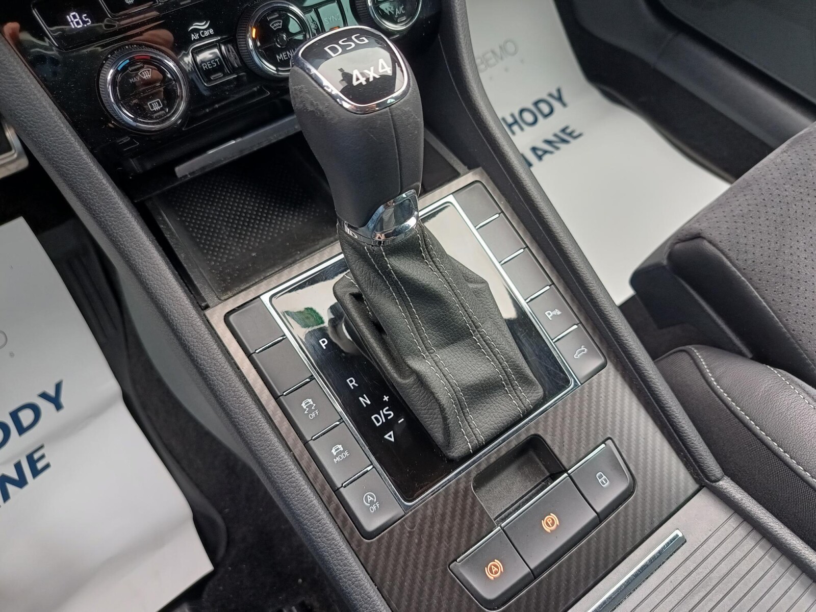 dźwignia zmiany biegów wykończona skórą