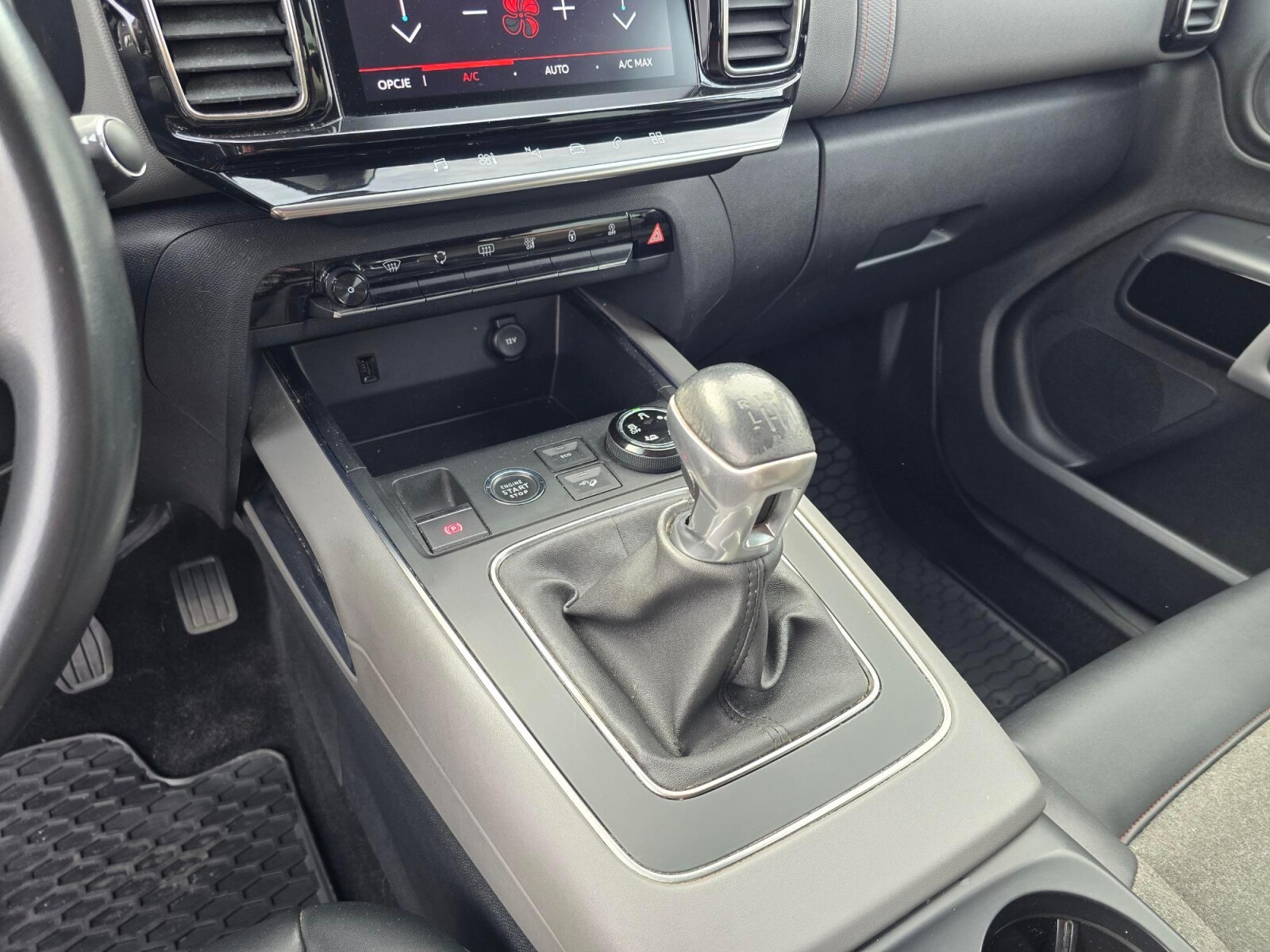 dźwignia zmiany biegów wykończona skórą