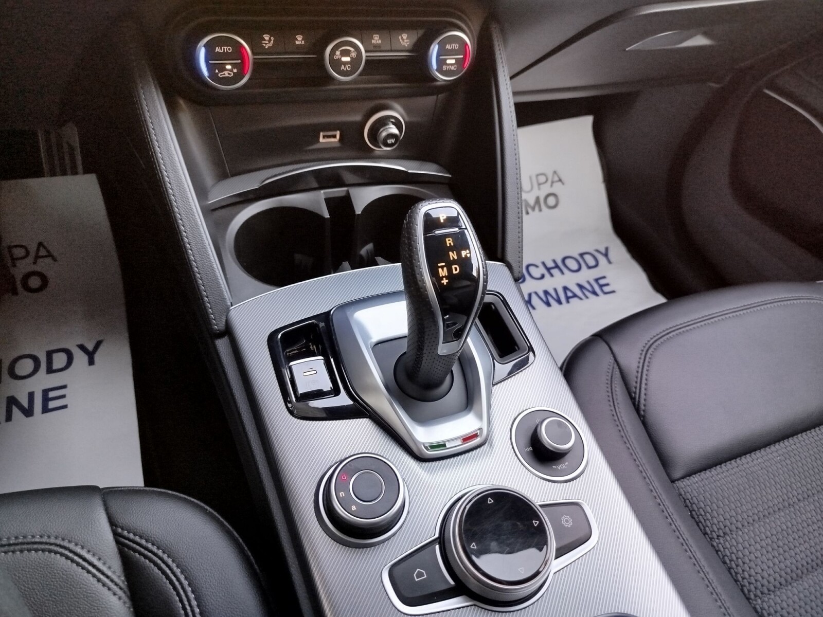 dźwignia zmiany biegów wykończona skórą