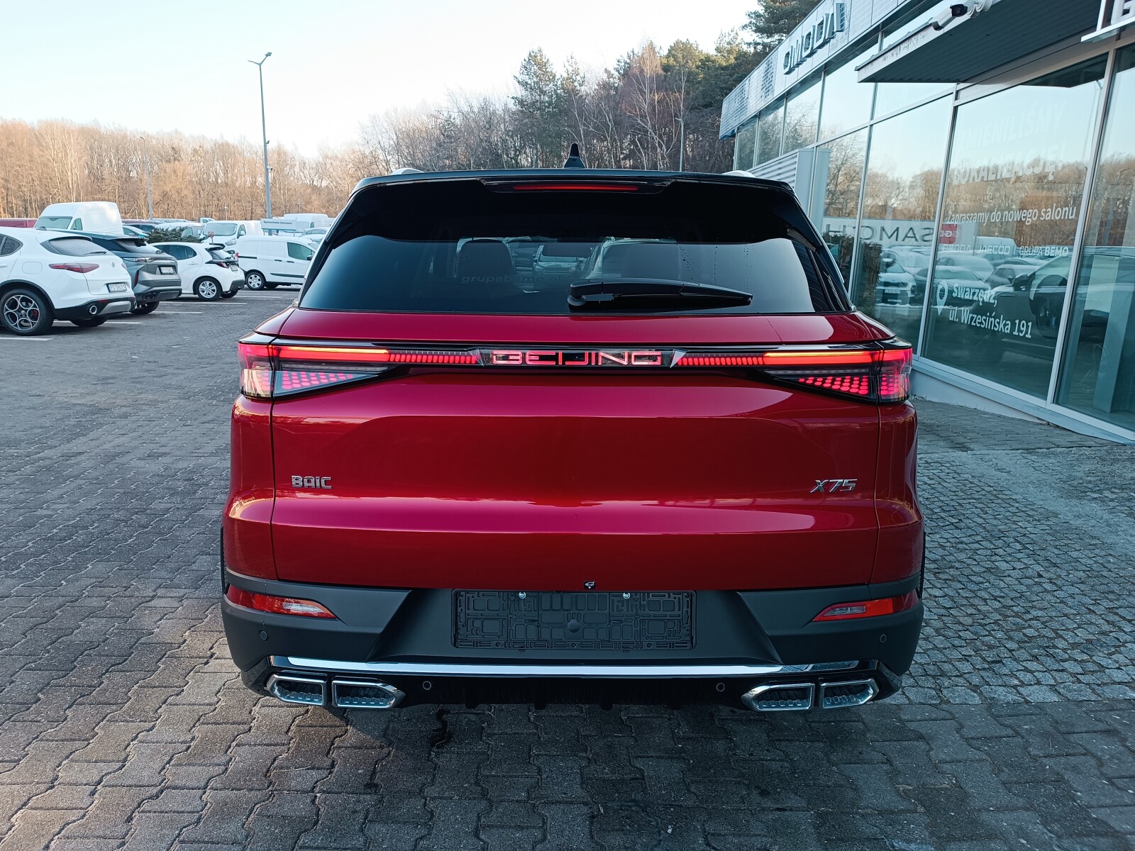 PRZYJMUJEMY W ROZLICZENIU SAMOCHODY WSZYSTKICH MAREK OFEROWANY SAMOCHÓD:   Marka, model:  Baic X75 Silnik: 1.5 177km Skrzynia biegów: automatyczna Forma sprzedaży: Vat23%      Wersja wyposażenia LUXURY   - historia serwisowa w ASO z udokumentowanym przebiegiem - VIN: LNBMCUAK4ST181303 - I rejestracja: 2025-12-16 - Kraj pochodzenia:  Czechy - Istnieje możliwość dokupienia dodatkowej gwarancji   WAŻNIEJSZE ELEMENTY WYPOSAŻENIA: - ABS + EBD + ESP - Asystent hamowania awaryjnego EBA - Elektryczny hamulec postojowy EPB - Wspomaganie ruszania na wzniesieniu Hill Control - System kontroli zjazdu ze wzniesienia HDC - Asystent parkowania - Poduszki powietrzne kierowcy i pasażera oraz kurtyny boczne - Trzypunktowe pasy bezpieczeństwa z przodu / regulowana wysokość pasów bezpieczeństwa - Czujniki ostrzegające o niezapięciu pasów bezpieczeństwa z przodu i z tyłu - System monitorowania ciśnienia w oponach TPMS - Czujniki parkowania przednie i tylne - Mocowania ISOFIX na tylnych fotelach - Ogranicznik prędkości - Wykrywanie zdjęcia rąk z kierownicy - System automatycznego odblokowania drzwi podczas kolizji lub wypadku - Alarm przeciw kradzieżowy / immobilizer - Przycisk START / STOP - Bezkluczykowy dostęp / kluczyk zdalny - Tempomat adaptacyjny ACC - Kamera cofania z dynamicznymi liniami pomocniczymi - Panoramiczny obraz z kamer 360° - Układ ostrzegający o zmęczeniu kierowcy (wizyjnie i dźwiękowo) - Ostrzeżenie przed niezamierzoną zmianą pasa ruchu LDW / asystent zjazdu z pasa ruchu - Czujniki martwego pola BSD - Automatyczne hamowanie awaryjne AEB (identyfikacja pojazdów i pieszych) - System ostrzegający przed kolizją czołową FCW - Asystent jazdy w korku TJA - System utrzymywania pasa ruchu LKA - System awaryjnego utrzymywania pasa ruchu - Automatyczne włączanie i wyłączanie świateł drogowych HBA - Zaawansowane reflektory przednie LED - Zaawansowane światła LED do jazdy dziennej - Opóźnienie wyłączenia świateł – „follow me home” - Zewnętrzne lusterka boczne z kierunkowskazami LED - Dynamiczne kierunkowskazy - Ukryta klamka w powierzchni drzwi - Relingi dachowe w kolorze czarnym - Panoramiczny otwierany szklany dach - Lusterka zewnętrzne regulowane elektrycznie i podgrzewane - Lusterka zewnętrzne z funkcją składania elektrycznego i automatycznego po zamknięciu - Bez ramkowa wycieraczka tylnej szyby - Antena w kształcie płetwy - Wycieraczki z czujnikiem deszczu - Elektrycznie sterowana klapa bagażnika z zabezpieczeniem przed przytrzaśnięciem - Czujnik otwierania klapy tylnej - Zestaw obniżający opór powietrza (spojler przedni, osłona dolna podwozia) - Mata wygłuszająca silnik - Wielokolorowe ambientowe oświetlenie wnętrza PRZED PRZYJAZDEM PROSZĘ KONTAKT: Ireneusz Różnowicz +48 783 299 921 mail: ireneusz.roznowicz@bemo-motors.pl