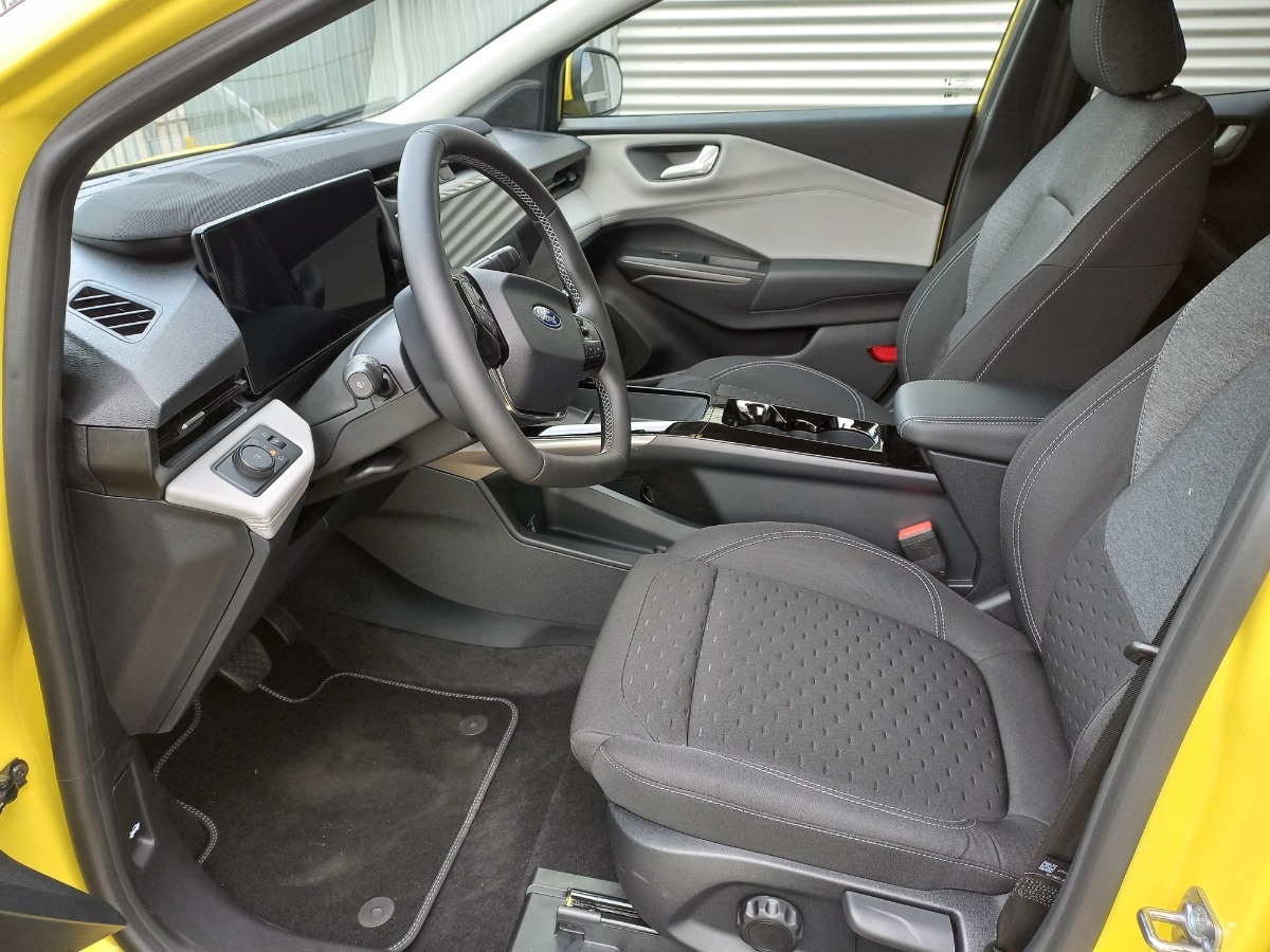 Przednie fotele – z tapicerką materiałową Eton/Baku w ciemnej tonacji Melange, z przeszyciami w kolorze Metal Grey/Black, styl sportowy (13PZ7)
