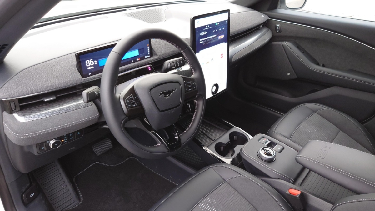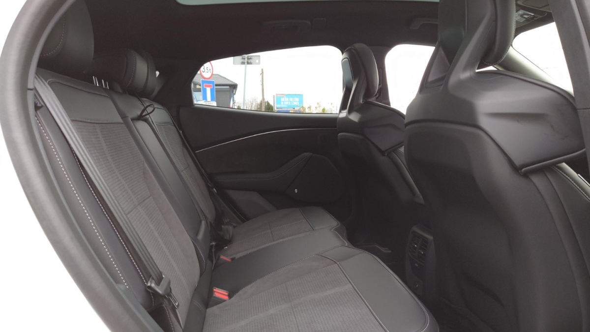 • Pakiet stylizacyjny Frost White (ABGBQ): Obręcze kół ze stopów lekkich - 19" z wykończeniem maszynowym oraz elementami lakierowanymi na biało (D2VL5), Tapicerka z perforowanej skóry ekologicznej Sensico w tonacji Light Space Grey (11MY0), Elementy dekoracyjne na desce rozdzielczej w kolorze białym, Podłokietnik centralny oraz podłokietniki na drzwiach w tonacji Light Space Grey, Osłony nadkoli lakierowane w kolorze białym, Emblematy "Mustang" lakierowane w kolorze białym, Białe logo "Mustang" na kierownicy (Pakiet dostepny wyłącznie dla wersji AWD 98kWh 351 KM z pakietem Technology Plus (J5XAC) oraz lakierem Star Whit)