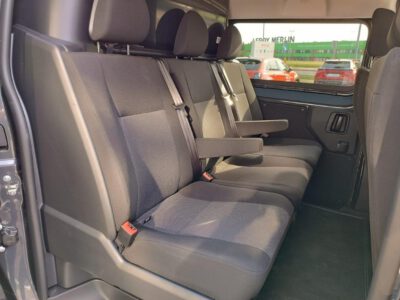 • Drugi rząd siedzeń - kanapa trzymiejscowa dzielona 2/3 (lewa), 1/3 (prawa) z zagłówkami i dwoma podłokietnikami, schowek pod siedziskiem (2/3); Przegroda stała przeszklona, izolowana za 2-gim rzędem siedzeń