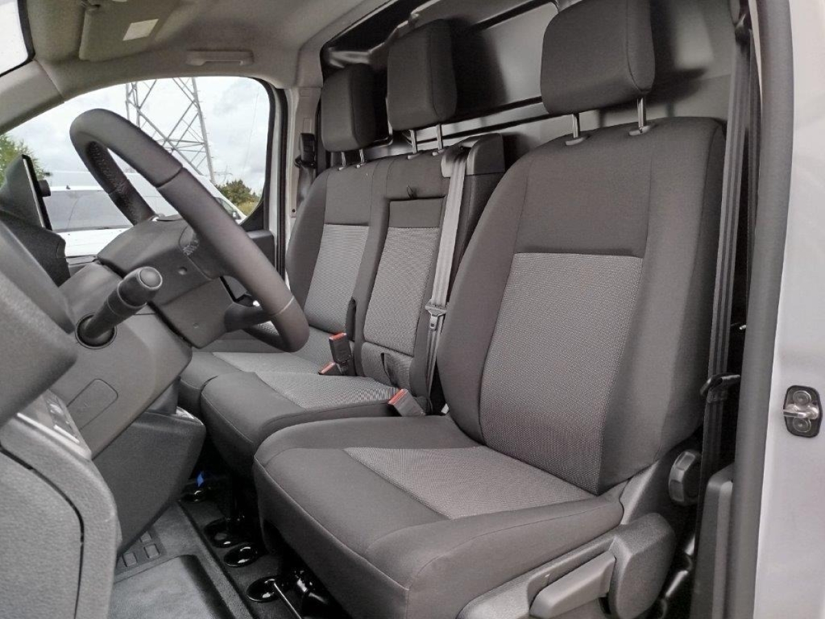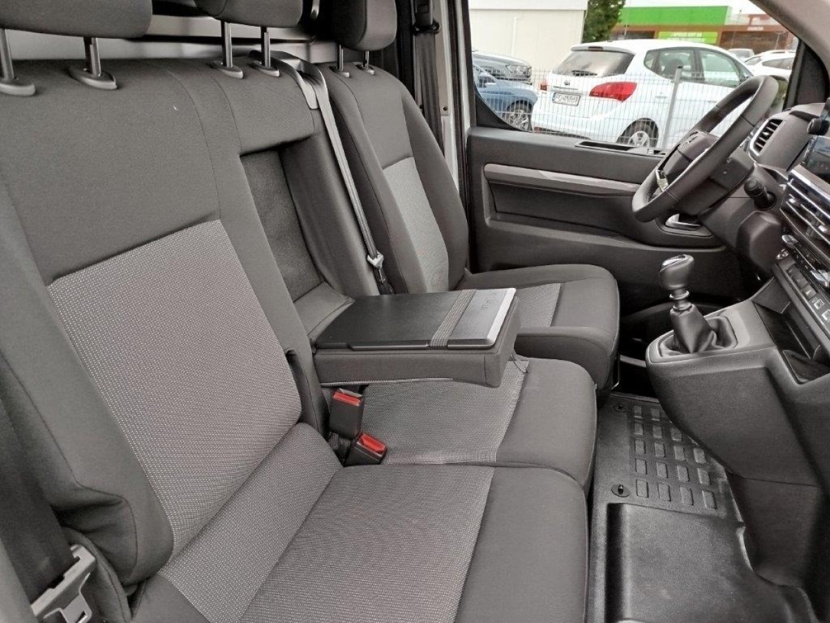 • Fotel kierowcy z podłokietnikiem, dwumiejscowa kanapa pasażerów ze schowkiem pod siedziskiem, regulacja fotela kierowcy: wzdłużna, oparcia, wysokości, odcinka lędźwiowego