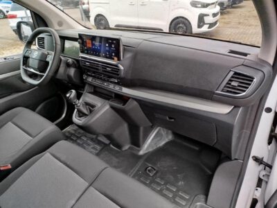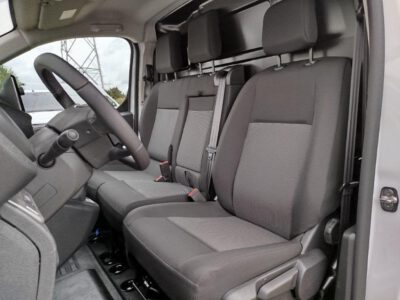 • Pakiet Flex Cargo (fotel kierowcy z podłokietnikiem i regulacją: wzdłużną, oparcia, wysokości, odcinka lędźwiowego + kanapa pasażera dwuosobowa ze schowkiem pod siedziskiem, z zagłówkami regulowanymi na wysokość + przegroda z otwieraną klapą + siedzenie skrajne pasażera podnoszone + rozkładany stolik formatu A4 w oparciu siedzenia centralnego)