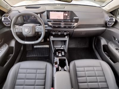 Deska rozdzielcza, pokrycie z teksturą inspirowaną logo Citroën, kartki nawiewów lakierowane w kolorze Siderite Grey