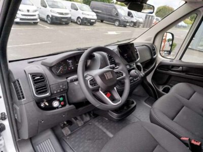• Tapicerka Czarna Lounge "Crepe" podwójne srebrne przeszycia, zagłówek z tapicerką z logo Ducato