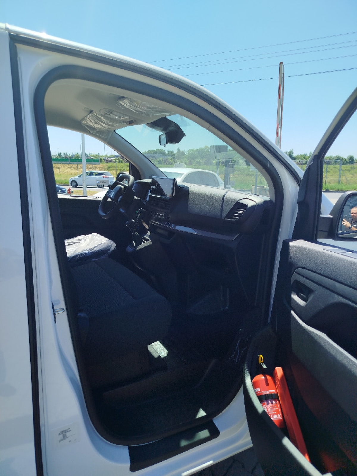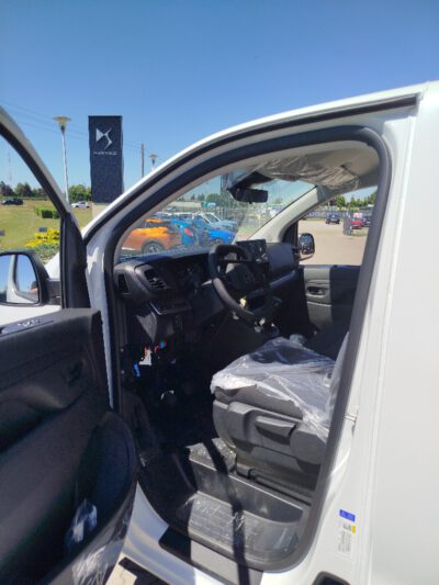 Fotel kierowcy z podłokietnikiem, dwumiejscowa kanapa pasażerów ze schowkiem pod siedziskiem, regulacja fotela kierowcy: wzdłużna, oparcia, wysokości, odcinka lędźwiowego