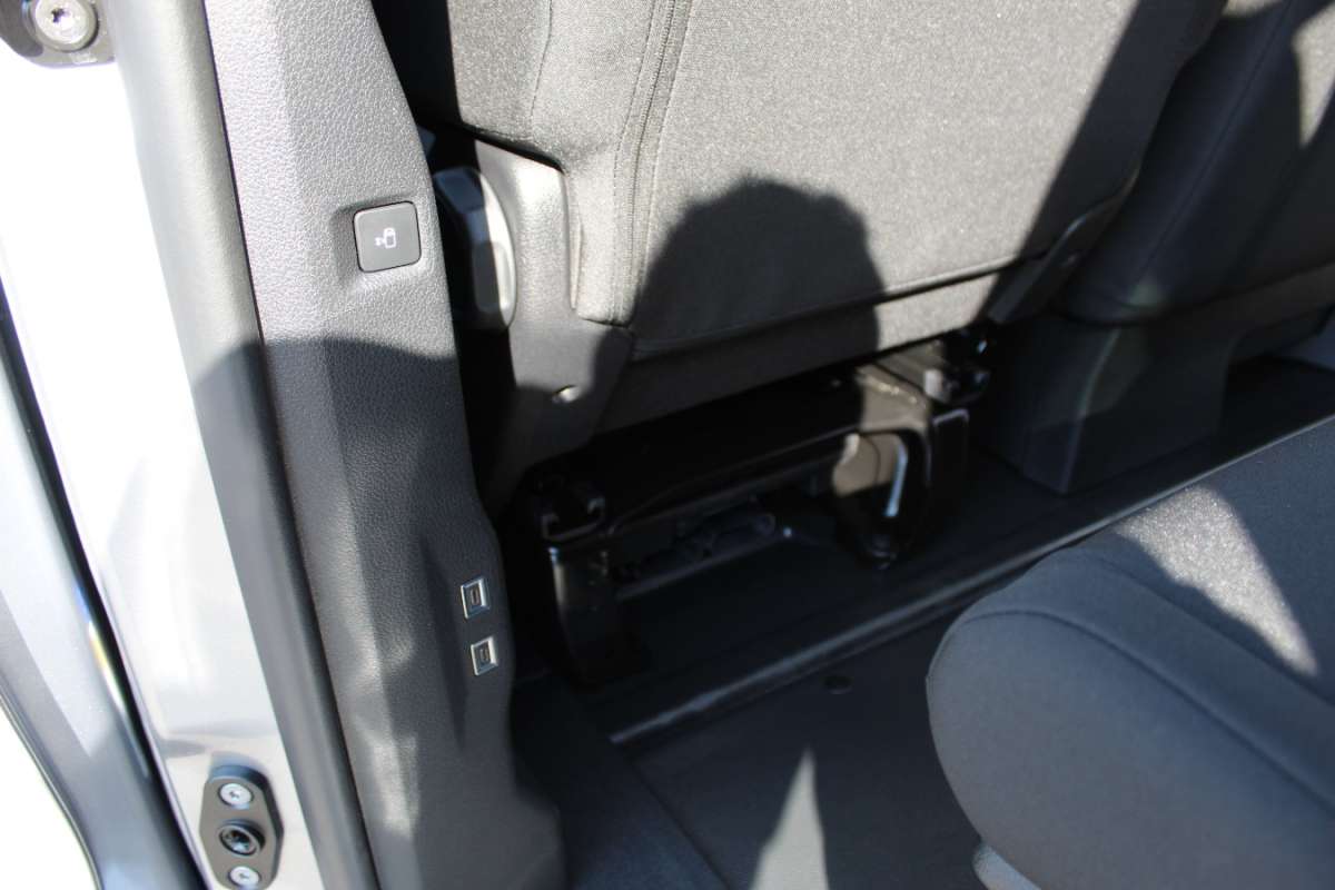 -Fotel kierowcy z regulacją w 6 kierunkach (wzdłużną, wysokości, pochylenia oparcia) z podłokietnikiem. Siedzenie pasażera dla 2 osób (nieregulowane)